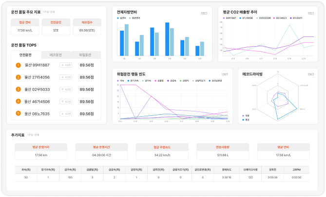 데이터 기반의 운전자 평가 및 에코 드라이빙을 실현하세요